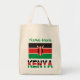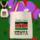 Sac fourre-tout montrant le drapeau kenyan avec le mot KENYA ci-dessous dans les couleurs du drapeau. Ci-dessus, ajoutez votre nom, en lettres vertes, pour une touche personnalisée ou un cadeau. Le design se présente de part et d'autre du sac. Super plaisir pour fourre-tout à une réunion de famille.