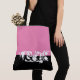 This cute stylish large tote bag is shown in hot pink and black colour block with the special text Vegas.