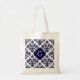 Tote Bag Lg Navy Blu What Damask #3 Navy Quatrefoil Monogra