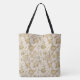 Grand sac fourre-tout tout-en-dessus imprimé en polyester brossé avec une image vintage des années 1920, des deux côtés, de vignes bronzées avec des fleurs bleues, bronzées et or et des feuilles sur crème.
