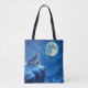 Sac fourre-tout de loup. Illustration avec des loups hurlant à la pleine lune pendant une nuit froide d'hiver debout sur une falaise.