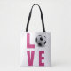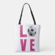 Love Soccer avec des lettres étincelantes rose chaud et le "o" est remplacé par un ballon de football.