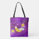 Tote Bag Lune somnolente et ciel étoilé pourpre d'étoiles