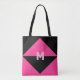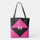 Sac fourre-tout magenta moderne et triangles noirs. Ma lettre peut être personnalisée.