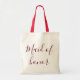 Belle calligraphie fourre-tout pour votre femme d'honneur, ce sac fourre-tout est doté d'une couleur naturelle et de poignées rouges. "Maid of honneur" est écrit dans un beau grand texte cursif bordeaux. Achetez le vôtre aujourd'hui !