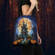 Portez une touche éffrayante d'Halloween avec ce sac fourre-tout, avec une maison hantée sur une colline et des citrouilles brillants au premier plan. Le ciel nocturne foncé avec la lune et les arbres tordus crée une atmosphère hantante, magnifiquement fait dans un style aquarelle et crayon. Imprimé à l'avant et au dos, ce sac est un accessoire élégant et fonctionnel pour la saison. Parfait pour tenir des bonbons, des articles de fête ou des objets de tous les jours, et un grand cadeau pour tous ceux qui aiment les maisons hantées, les citrouilles et la décoration de maison d'Halloween éffrayante.