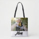 Maman Etabli Script Blanc Sac fourre-tout Photo Noir Blanc Mère Etabli Script Blanc Design Photo. Remplacez la photo par votre propre enfant et changez les années pour les années où vous êtes devenu mère.