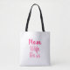 Maman femme patron rose et blanc script personnalisé texte mignon Sac fourre-tout moderne. Texte rose entièrement personnalisable, arrière - plan blanc. Grand cadeau pour maman pour la journée de la mère ou son anniversaire.