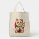 Cette illustration éclatante présente un Maneki Neko japonais traditionnel, ou "Chat chanceux", représenté dans un style charmant et fantaisiste. Le chat est montré assis debout, soulevant sa patte gauche dans un geste d'accueil qui est censé apporter la chance et le bonheur. Le chat a une expression délicieuse et joyeuse, avec ses yeux larges et sa bouche courbée dans un sourire doux. Le Maneki Neko est principalement blanc avec des taches de jaune et de rouge, ajoutant une touche de gaieté et de coloris au design. Il porte un collier vert orné d'une cloche en or, symbolisant richesse et prospérité. Le chat tient une grande pièce rouge avec des empreintes de pattes noirs, en soulignant son rôle de porte-bonheur et de bonne fortune. L'arrière - plan présente un cercle rouge audacieux, rehaussant l'apparence brillante et joyeuse du chat. Le design d'ensemble a une texture rétro, légèrement en détresse, lui donnant une sensation nostalgique et intemporelle.