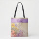 Ces magnifiques fleurs sauvages élégantes ont l'air de rêver sur ce modèle de sac de mariage romantique. Les couleurs lavande, violette, rose et jaune en font un cadeau époustouflant pour la mariée, la mère de la mariée, les demoiselles d'honneur, etc. Tous les textes sont personnalisables.