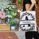Tote Bag Modern Black Floral Wreath Split Monogram "A"