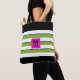 Renouvelez votre garde-robe d'été avec ce sac fourre-tout personnalisé qui présente des rayures vertes et noires modernes, un blocage de couleurs audacieux et un monogramme personnalisable. Modifiez le nom et l'initiale pour créer un cadeau unique qui convient parfaitement aux adolescentes et aux femmes de tous âges. Qu'il soit utilisé pour faire des courses, une journée entre amis ou un week-end, ce fourre-tout polyvalent ajoutera une touche de couleur à n'importe quelle tenue, ce qui en fait l'accessoire idéal pour les aventures estivales.