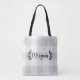 Sac fourre-tout d'impression personnalisé avec votre nom monogramme. Veuillez noter que la texture de lin subtile fait partie du design imprimé et que le produit n'est pas fait de tissu de lin réel. Cliquez sur le bouton Customiser pour ajouter votre propre texte et en créer un unique de conception.