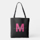 Tote Bag Monogramme de nom de script moderne rose noir chau