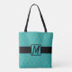 Tote Bag Monogramme de Quatrefoil turquoise et or
