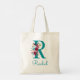 Tote Bag Monogramme en écriture florale R couleur sarcelle