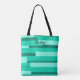 Motif géométrique abstrait vert sac fourre-tout quotidien avec votre nom. Motif et nom sont des deux côtés du sac. Monogram peut être personnalisé en style de police et couleur pour répondre à vos détails personnels.