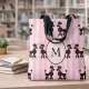 Si vous aimez la combinaison des couleurs rose et noir, c'est le sac fourre-tout parfait pour vous. Design chic, ce sac présente des rayures verticales roses ornées de caniches noires. Au centre est une forme ovale parfaite pour insérer votre initiale. La forme ovale est rose avec des bordures noires. Commandez dès aujourd'hui !