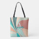 Tote Bag Monogramme Turquoise Abstrait Retro Moderne Peach