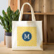 Tote Bag Motif Chevron jaune et bleu avec Monogramme