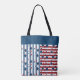 Tote Bag Motif rayé étoile dans les tons rouge et bleu lanc