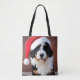 Mignonne Bernedoodle portant un chapeau de Père Noël.