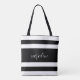 Vous cherchez un accessoire parfait pour un look quotidien et chic ? Ce beau et élégant Sac fourre-tout rayé noir et blanc, au style simple et minimaliste, est fait pour vous ! Vous pouvez le personnaliser facilement avec votre monogramme ou votre nom. Est le cadeau parfait pour vos copines à l'anniversaire, la Saint-Valentin, ou toute autre occasion.