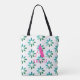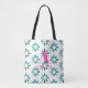 Tote Bag Nom du monogramme Aquarelle florale rose vert rétr