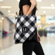 Le buffle noir et blanc vérifie le sac fourre-tout plaid avec monogramme au centre avec des bordures blanches et noires. Ajoutez votre nom ou supprimez l'exemple de texte pour laisser la zone vide sur le coin solide noir. Le côté arrière est une couleur noire solide qui peut être changée selon vos besoins. Le style, la taille et la couleur de la police de texte peuvent également être modifiés pour un aspect différent. Contactez le concepteur si vous souhaitez que ce design soit modifié ou sur un autre produit.