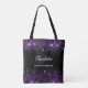 Un élégant arrière - plan noir. Décoré avec de la poussière de parties scintillant en faux violet. Personnalisez et ajoutez votre prénom, vos initiales monographiques et votre nom complet. Le nom est écrit avec un script de style écrit à la main.