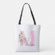 Tote Bag Nom initial élégant moderne Pink Floral Monogramme