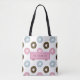 Sac fourre-tout personnalisé de beignets mignons. Ajoutez votre propre nom ou texte personnalisé. Fait un grand cadeau personnalisé pour elle. Conçu et illustré avec amour par Kristine Lee Designs www.kristineleedesigns.com