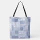 Tote Bag Nostalgique Indigo Blue White Faux Patchwork Motif