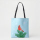 Oiseau cardinal sur pin avec baies sauvages sur Sac fourre-tout bleu clair. De beaux Sacs fourre-tout modernes !