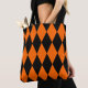 Tote Bag Orange Black Harlequin Diamonds Checkers Design