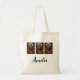 A tote bag with a cool looking owl with a piercing stare. A full moon in the back with a garden of red flowers.