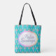 Ce sac fourre-tout d'accent bleu turquoise Palm Springs avec des palmiers pastel est tellement amusant ! Jouer des teintes douces multicolores sur un arrière - plan turquoise dynamique invoque l'ambiance moderne du milieu du siècle de l'oasis désert Palm Springs, Californie. Vous pouvez modifier le texte avec votre propre message !