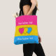 Shopping tote bag with the pansexuality pride flag with little hearts in the center of the design. Pink, yellow, and blue flag of the pan pride movement; with an editable text field for your name or message