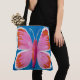 Tote Bag Papillon rose vibrant sur Arrière - plan bleu