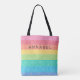 Parties scintillant mignonne Arc-en-ciel rayures Motif coloré Nom personnalisé Sac fourre-tout