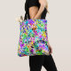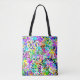 Un oeil abstrait dans les tons rose, violet, bleu, turquoise, vert, baies, orange, jaune, noir et plus fait un sac coloré !