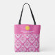Tote Bag Pickleball Design Pink Ikat Motif Custom Paddle