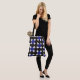 Ce sac fourre-tout moderne présente de grands points audacieux motif géométrique en noir et bleu foncé des deux côtés.