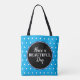 Pois blancs réversibles élégants sur arrière - plan bleu ciel. Avant du sac a de grands cercles bleus et noirs foncés pour personnaliser avec votre initiale monogrammée en texte blanc. Le dos du sac a le libellé, Avoir une belle journée. Laissez le libellé, insérez le vôtre, ou supprimez pour afficher uniquement la conception de motif d'image grand cercle. Fraîchement tendance mode sac femme géométrique pour toute saison. Conception originale © TamiraZDesigns. www.zazzle.com/tamirazdesigns