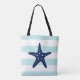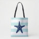 Tote Bag Poisson étoilé bleu sur des rayures de menthe