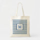 Tote Bag Rayures bleu foncé et blanc avec monogramme person