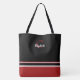 Tote Bag Rayures Monogramme Modernes Noir Rouge