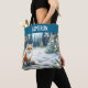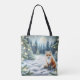Sac fourre-tout de Noël personnalisé. Une jolie aquarelle d'hiver illustrant un renard assis dans la neige lors d'une nuit froide d'hiver dans un merveilleux pays d'hiver.