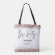 Tote Bag Rose Gold Parties scintillant Script Mme Nom Date