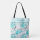 Tote Bag Roses bleu turquoise, Gris et Monogramme